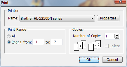Select from the drop down list the printer to use. The program initially selects the Windows default printer.